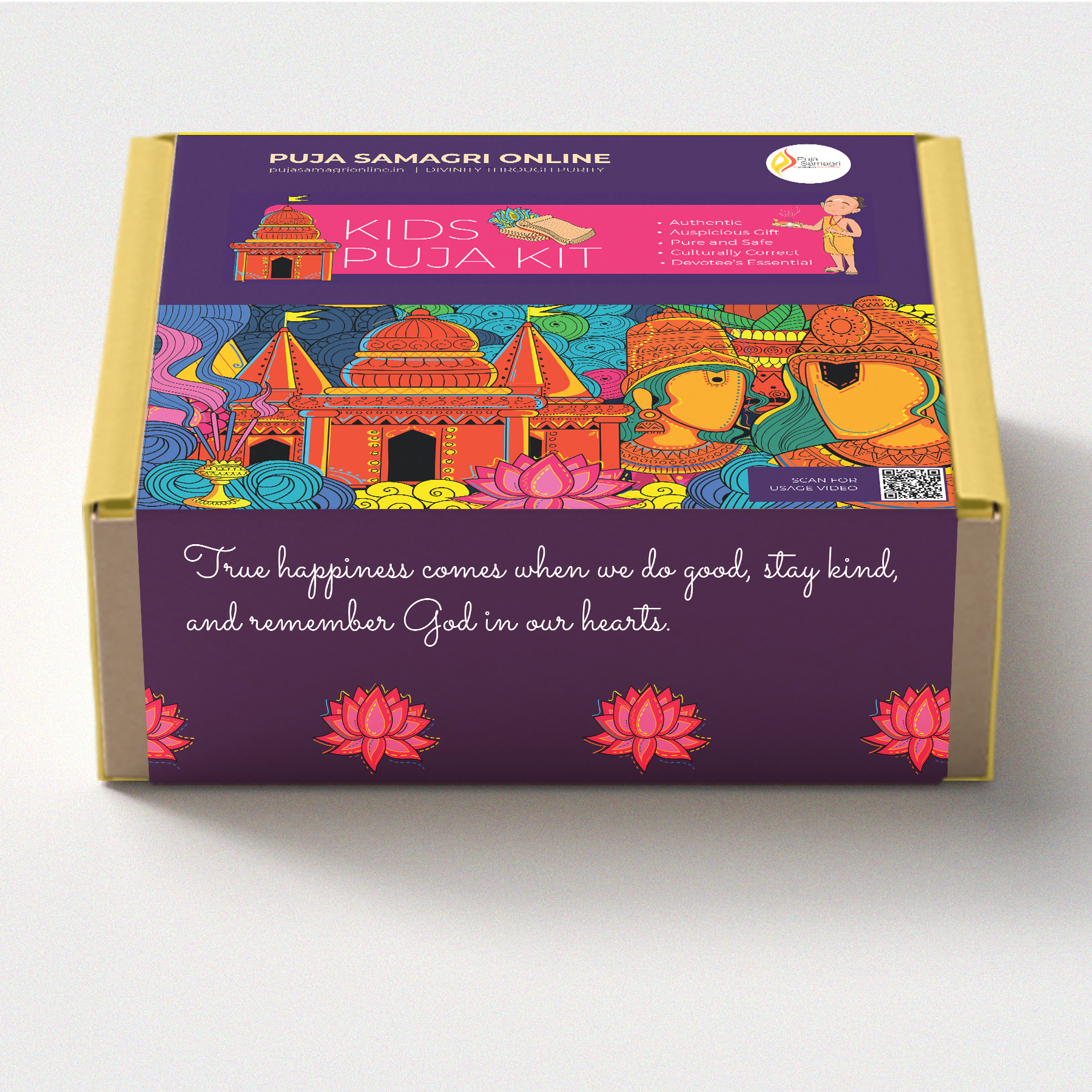 The Kids Puja Kit is thoughtfully designed for young learners to explore the joy ofdaily rituals in a way that’s simple, meaningful, and fun. From colorful packagingto step-by-step instruction cards made just for kids, everything in this kit invitesyour child to participate in prayer time with curiosity and pride.